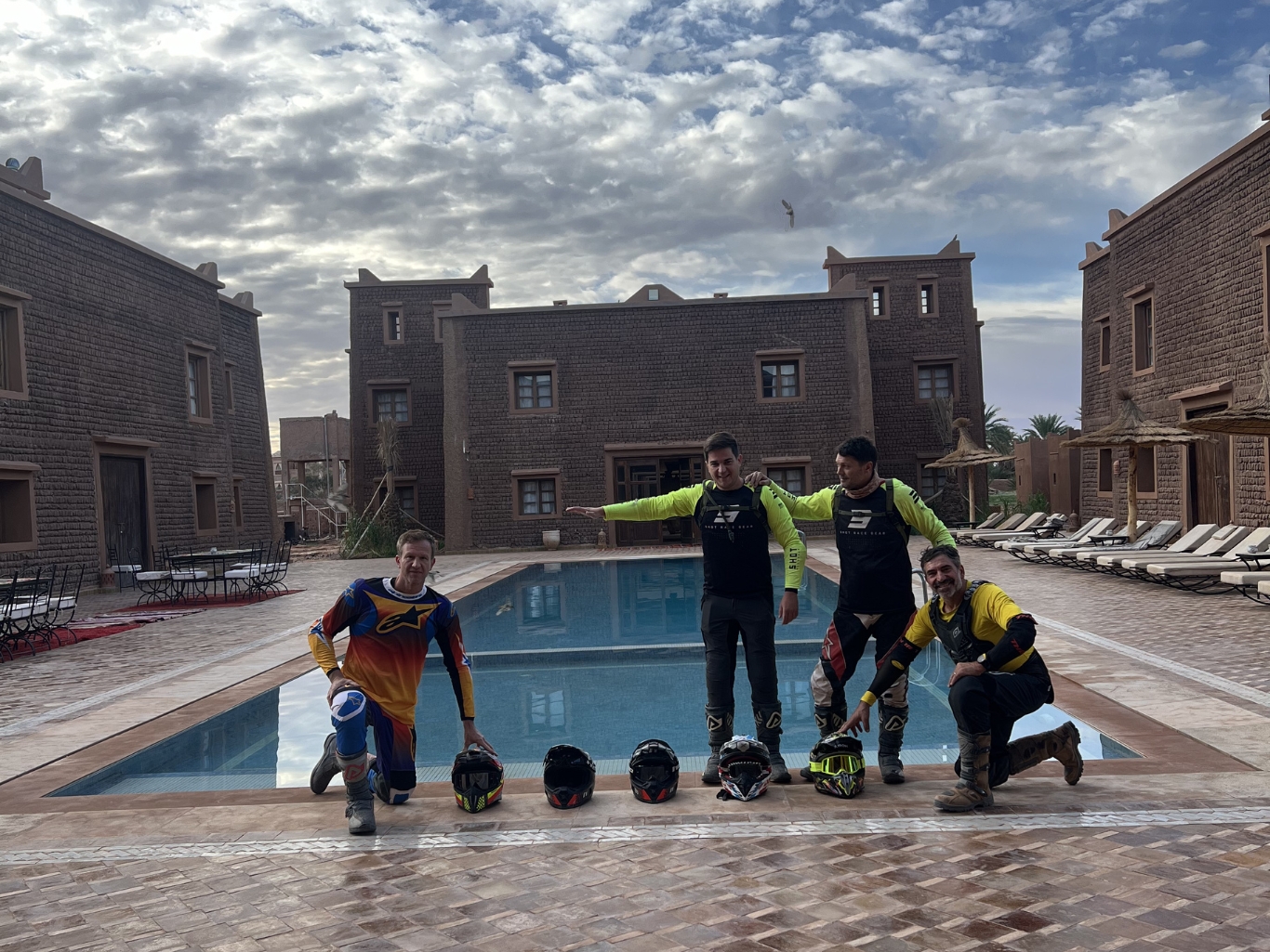 En Moto Enduro Merzouga, sabemos que después de un día recorriendo el desierto en moto, un buen descanso es esencial. Por eso, todos nuestros tours incluyen alojamiento en hoteles, riads y campamentos bereberes seleccionados.