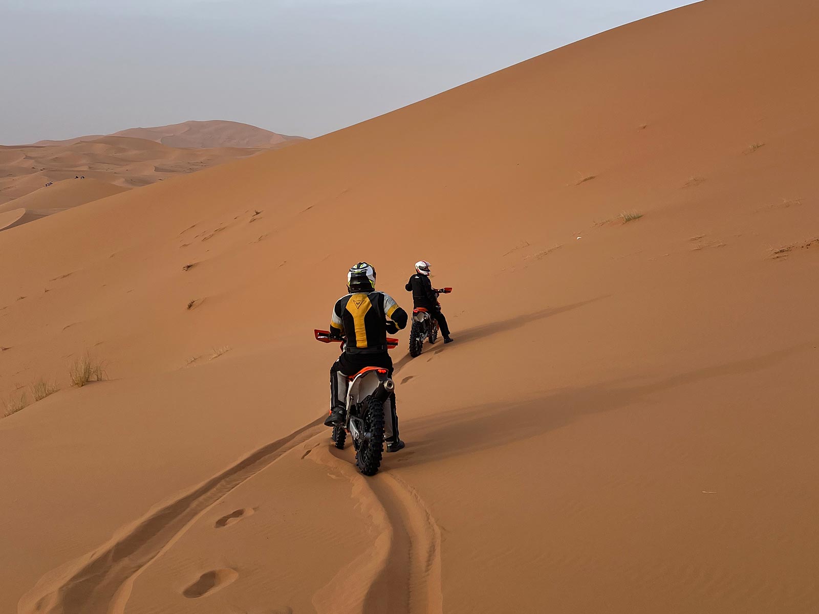 La KTM 450 EXC es la elección perfecta para conquistar el Sahara. Su potencia, ligereza y agilidad la convierten en una máquina insuperable para terrenos de arena, grava y pistas de alta velocidad.