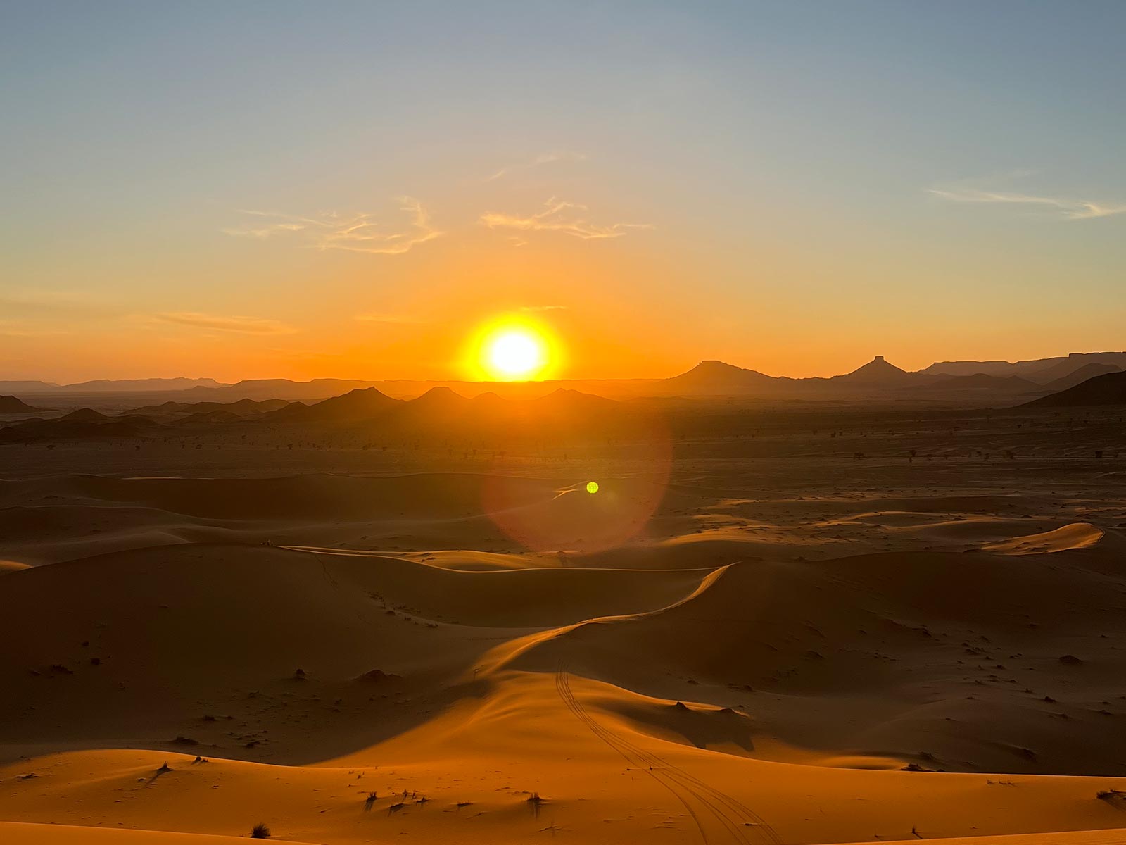 - La posibilidad de ver un amanecer o atardecer sobre las crestas de arena.