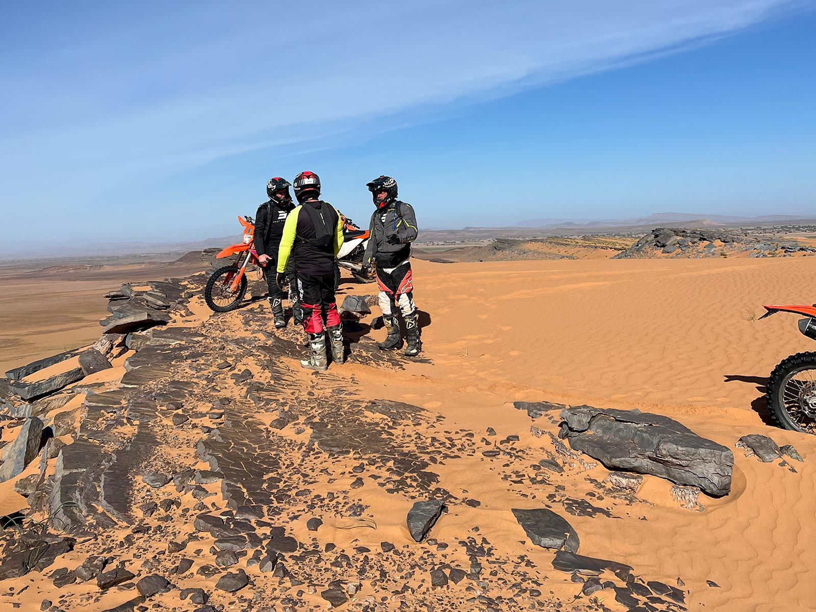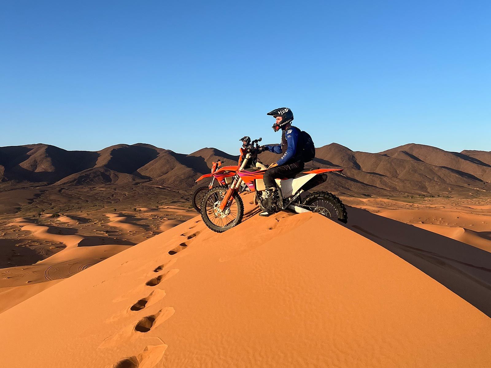 Sube a tu KTM y empieza la travesía por las arenas doradas del Sahara. Nos adentraremos en las dunas de Erg Chebbi, siguiendo rutas emocionantes y desafiantes adaptadas a tu nivel de experiencia.